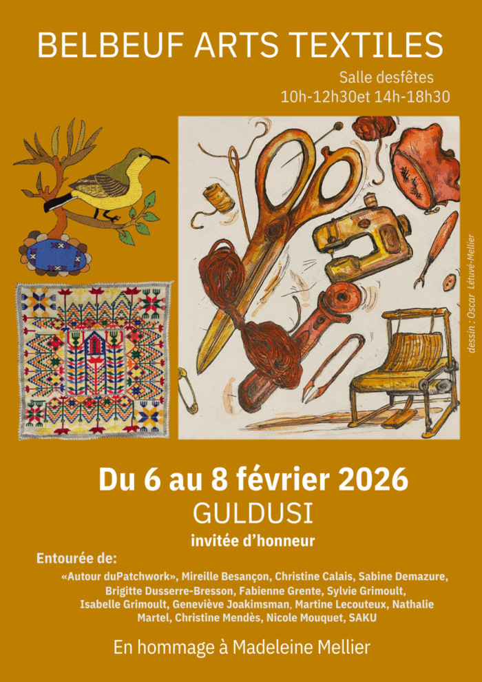 1er Salon des Arts Textiles : du 6 au 8 février 2026, à la Salle des Fêtes de Belbeuf.